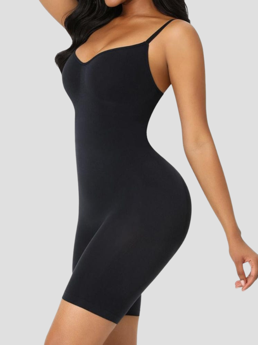 A full coverage, curve-enhancing, high compression bodysuit shaper designed with seamless knitting for undetected wear under the tightest dresses and outfits for a head-turning sexy sleek line from bust to leg.